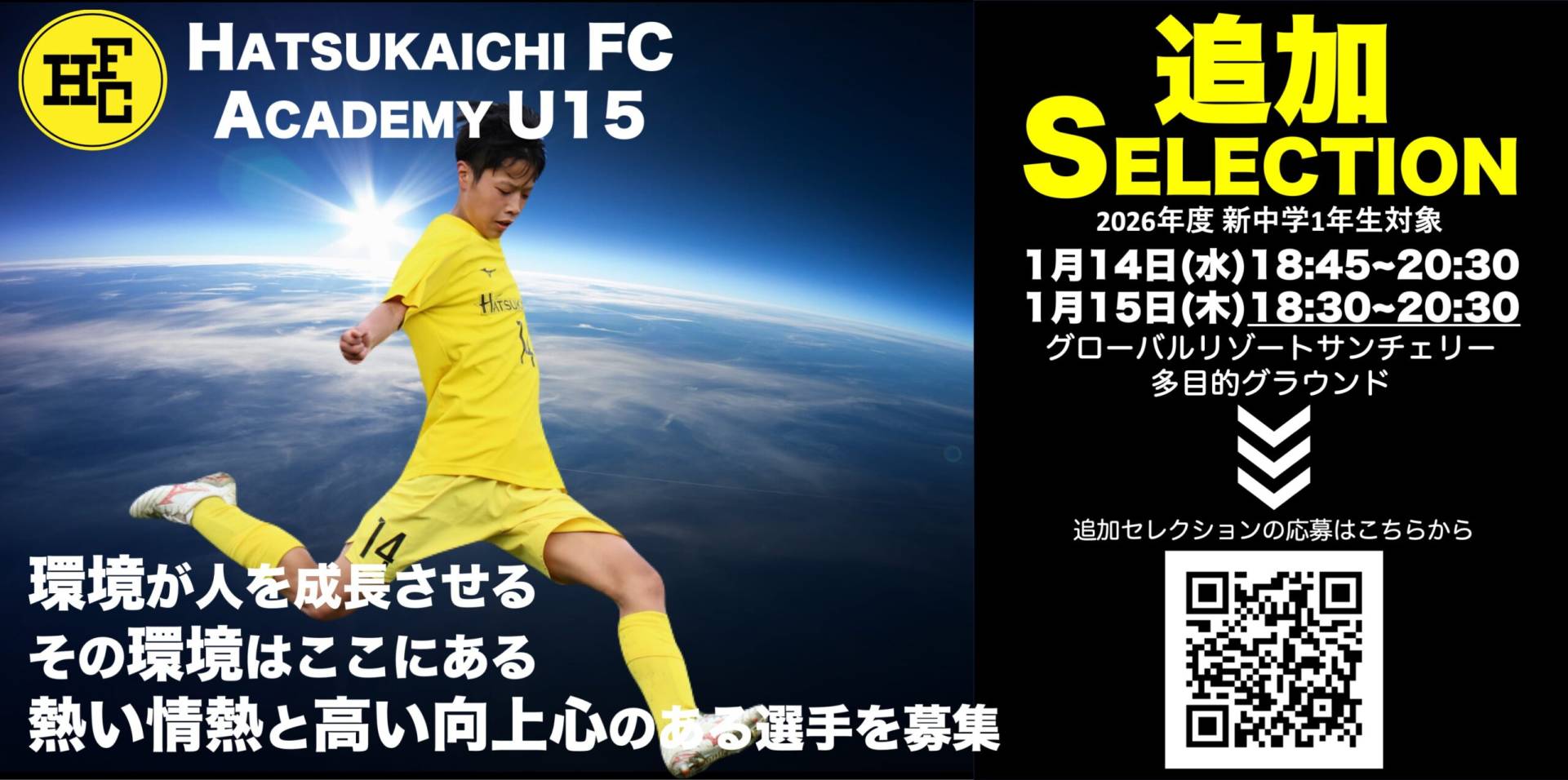 ACADEMY10月体験会&セレクションのお知らせ【2026年度廿日市FCアカデミーU15(新中学1年生対象)】